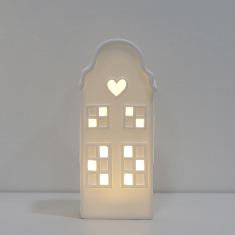 Modern Indoor Ceramic Christmas White Houses with LED Lights